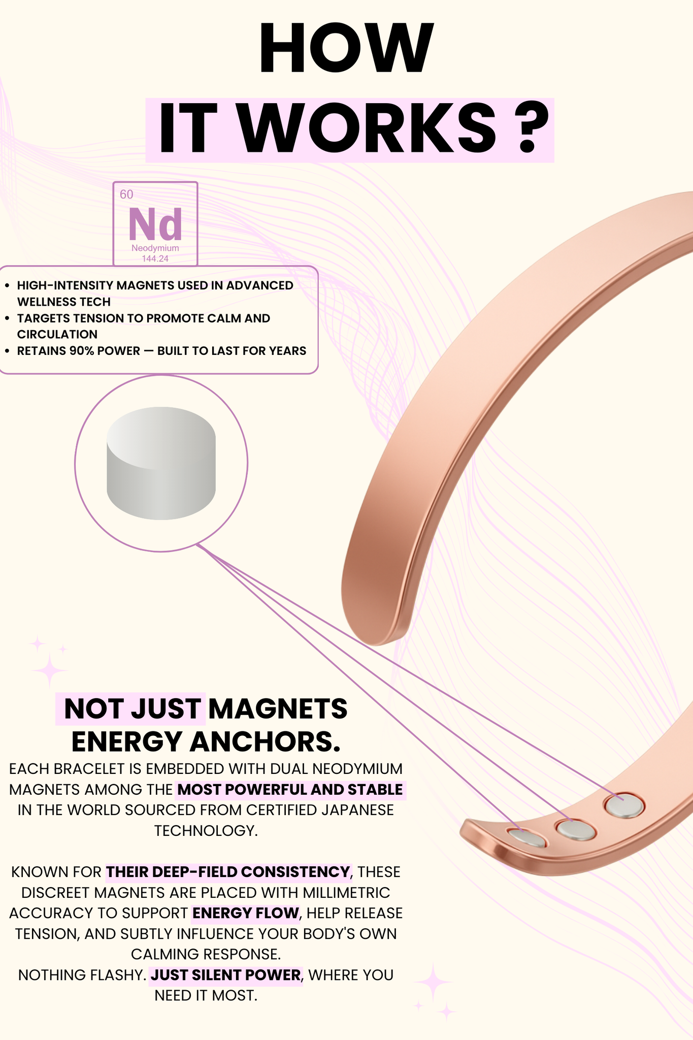 It combines a refined, adjustable design with discreet neodymium magnets chosen for their stability and subtle energetic influence. It’s not a medical device or a cure. It’s a wearable ritual that many describe as calming, grounding, and emotionally supportive. -