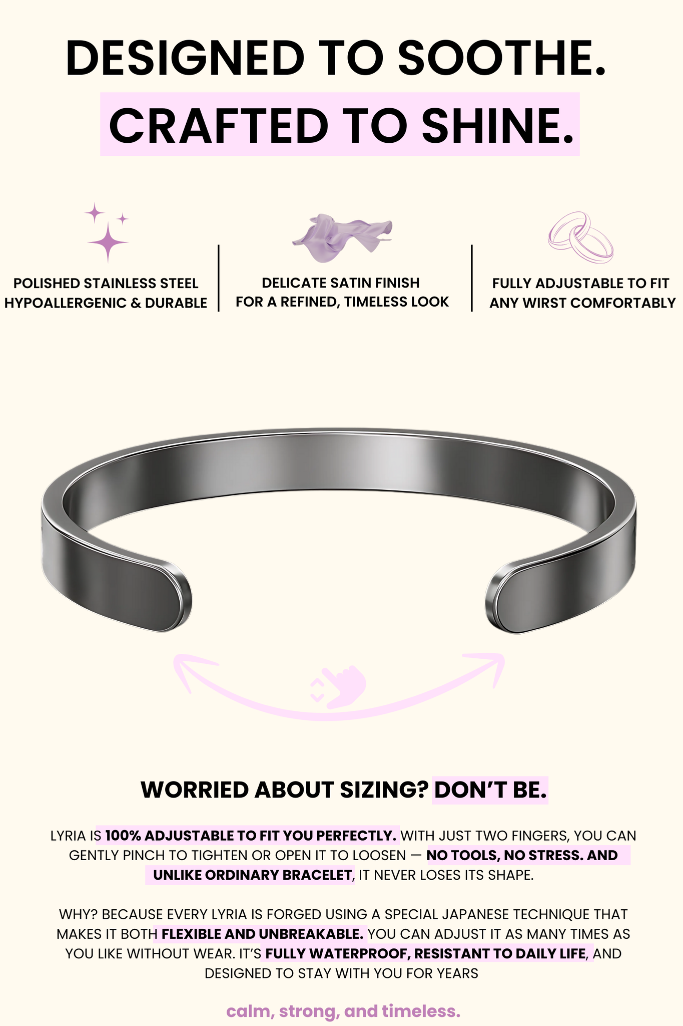 With the Lyria bracelet, you embrace a natural and elegant way to support your well-being. Powered by three precision magnets, it works in harmony with your body’s own magnetic field to help ease endo pain, calm stress, and restore balance — all while looking effortlessly refined on your wrist.