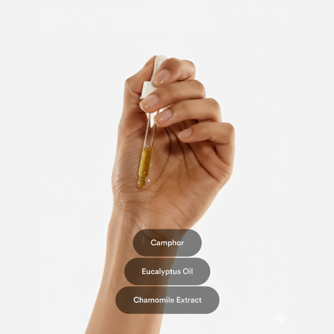 Menthol 5mg, Camphor 3mg, Ginger Extract 20mg, Lavender Oil 15mg, Chamomile Extract 3mg, Eucalyptus Oil 8mg, Iron 3mg
